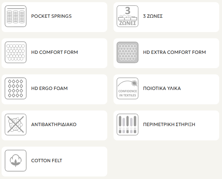 Το ανατομικό στρώμα Enjoy συνδυάζει την άριστη υποστήριξη με την αξεπέραστη άνεση, για έναν ύπνο που αναζωογονεί σώμα και πνεύμα. Χάρη στην τεχνολογία Pocket Spring 3 ζωνών 280 ελατήρια/m2, το Enjoy προσαρμόζεται τέλεια στις καμπύλες του σώματος, εξασφαλίζοντας την ιδανική κατανομή του βάρους και έναν ύπνο χωρίς διαταραχές.