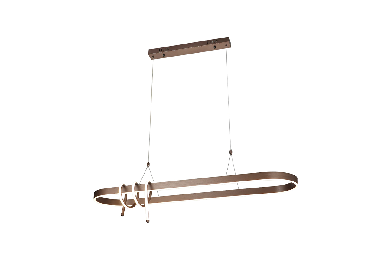 Εντυπωσιακό κρεμαστό φωτιστικό οβάλ ράγα με μεταλλικό καφέ σκελετό, με φωτισμό led και διακριτικές διακοσμητικές λεπτομέρειες σε σχήμα ελατήριο.