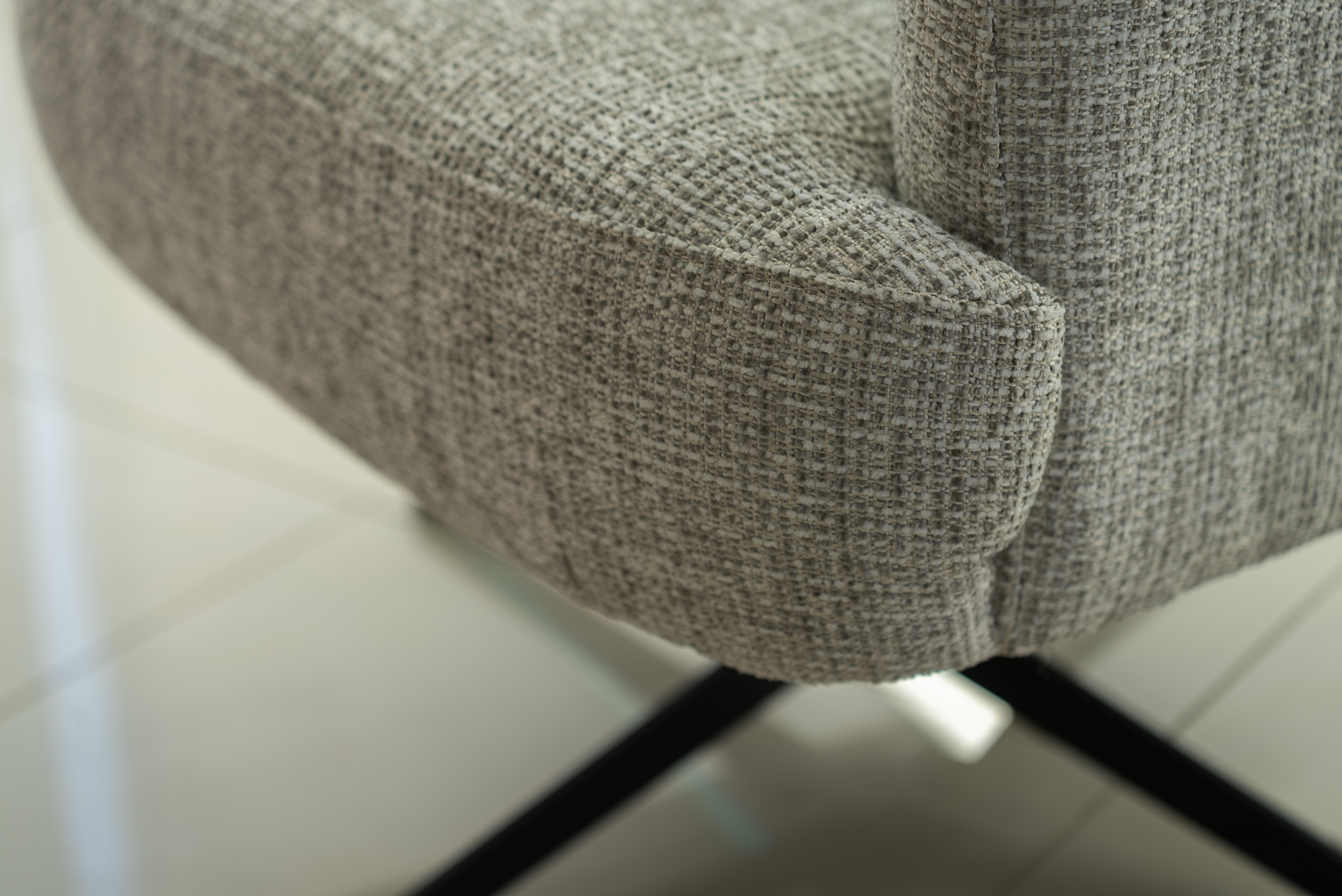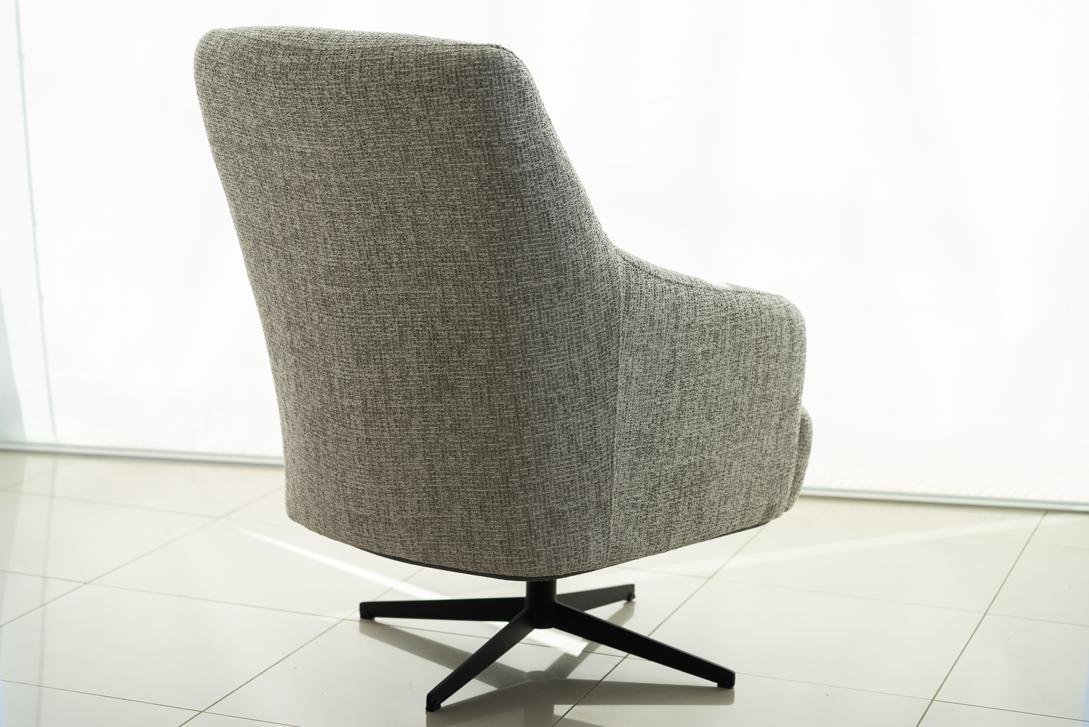 Περιστρεφόμενη πολυθρόνα σύγχρονου σχεδιασμού με υφασμάτινη επένδυση. Διαθέτει άνετο κάθισμα με πλούσια επένδυση, ενσωματωμένα μπράτσα με καμπυλωτές γραμμές και ψηλή πλάτη για σωστή στήριξη της μέσης και της πλάτης. Η μεταλλική μαύρη βάση προσφέρει σταθερότητα και δυνατότητα περιστροφής 360°. Ιδανική για σαλόνι, γραφείο ή χώρο αναμονής.
