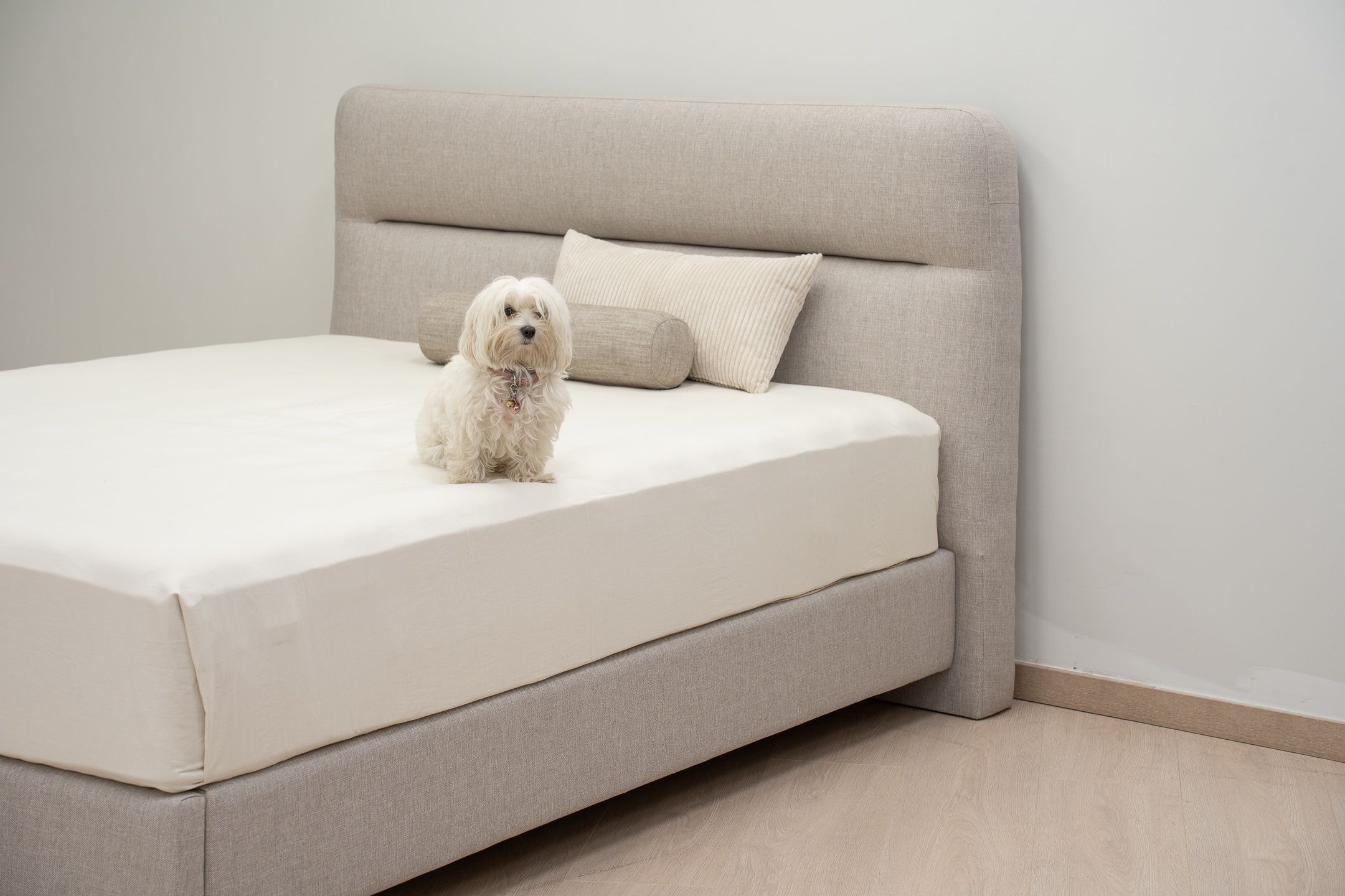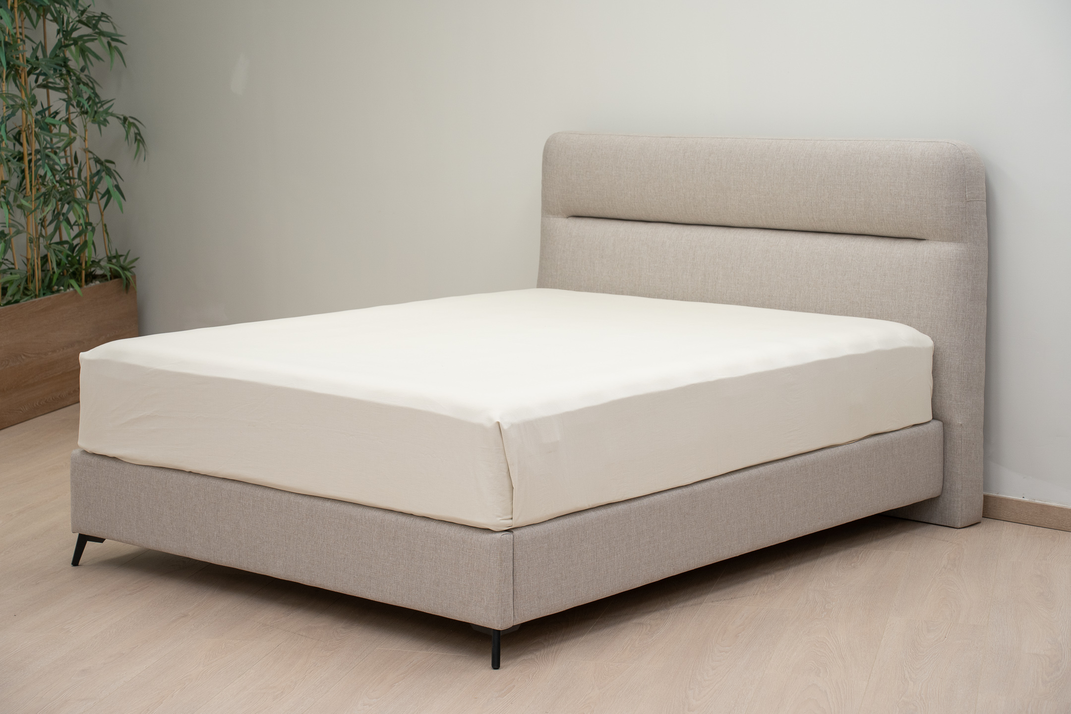 Το επενδυμένο κεφαλάρι του με τις καθαρές, μίνιμαλ γραμμές προσδίδει μια αίσθηση λιτής πολυτέλειας, ενώ η ελαφριά του κλίση δημιουργεί ένα αναπαυτικό σημείο στήριξης, ιδανικό για στιγμές χαλάρωσης και ανάγνωσης.