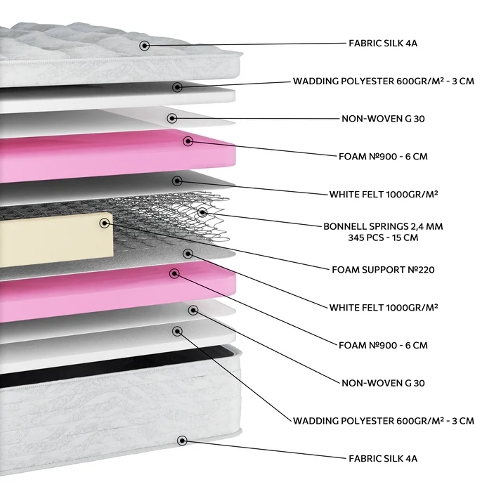 Μαλακό στρώμα με ανεξάρτητα ελατήρια Pocket που προσαρμόζονται στις κινήσεις του σώματος, προσφέροντας στοχευμένη στήριξη και αίσθηση απόλυτης χαλάρωσης. Οι στρώσεις αφρού υψηλής ποιότητας εξασφαλίζουν απαλή αίσθηση και μειώνουν τα σημεία πίεσης, συμβάλλοντας σε έναν ξεκούραστο ύπνο χωρίς διακοπές. Το πολυτελές ύφασμα Silk 4A χαρίζει μεταξένια υφή και δροσερή αίσθηση, ιδανική για όσους αναζητούν κορυφαία άνεση. Μια εξαιρετική επιλογή για όσους επιθυμούν έναν ποιοτικό ύπνο με αίσθηση αγκαλιάσματος και απαλή στήριξη.