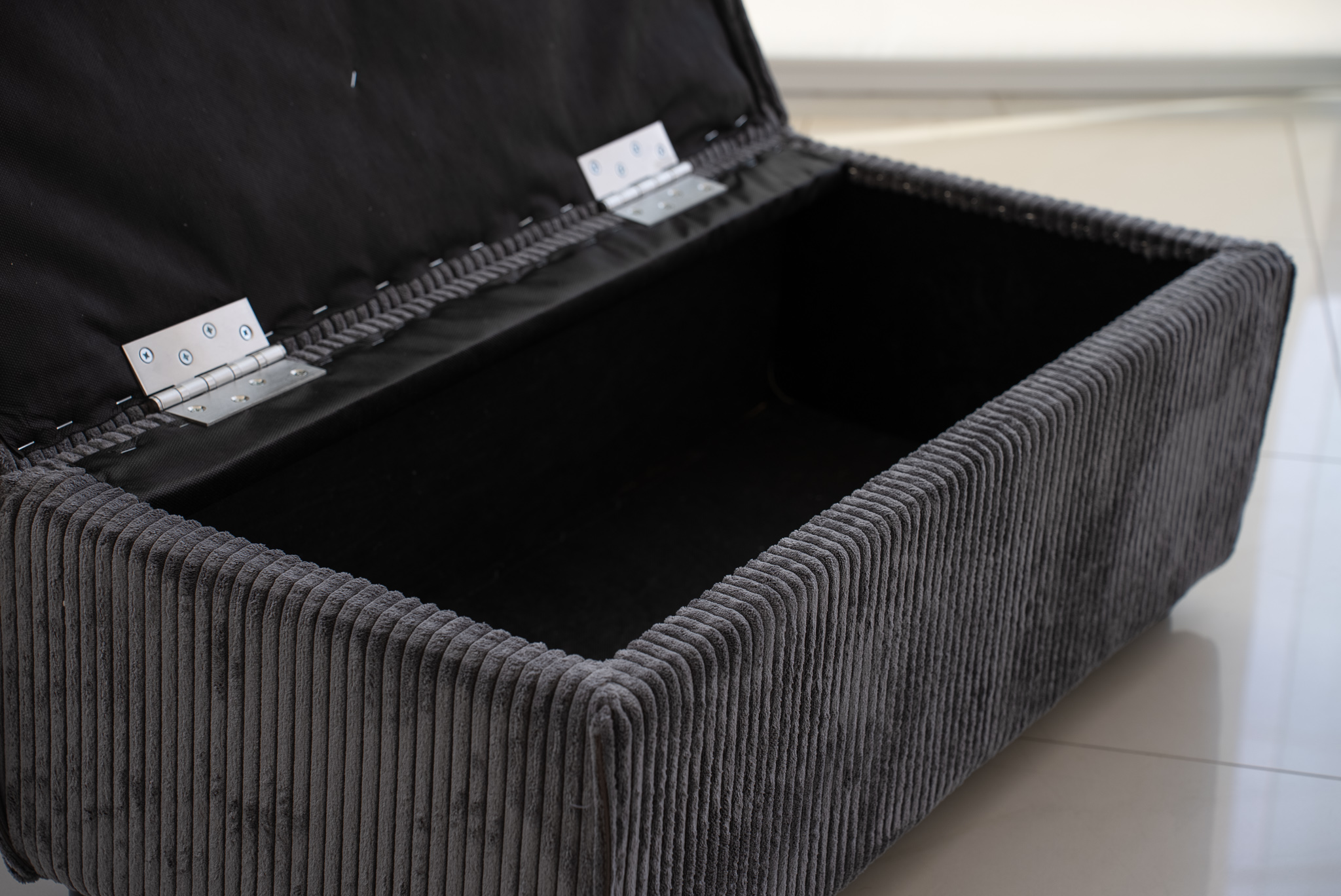 Λειτουργικό και κομψό σκαμπό με μαλακή υφή κοτλέ σε μοντέρνο ανθρακί χρώμα. Ιδανικό για κάθε χώρο, προσφέρει κρυφό αποθηκευτικό χώρο, συνδυάζοντας άνεση και πρακτικότητα.
