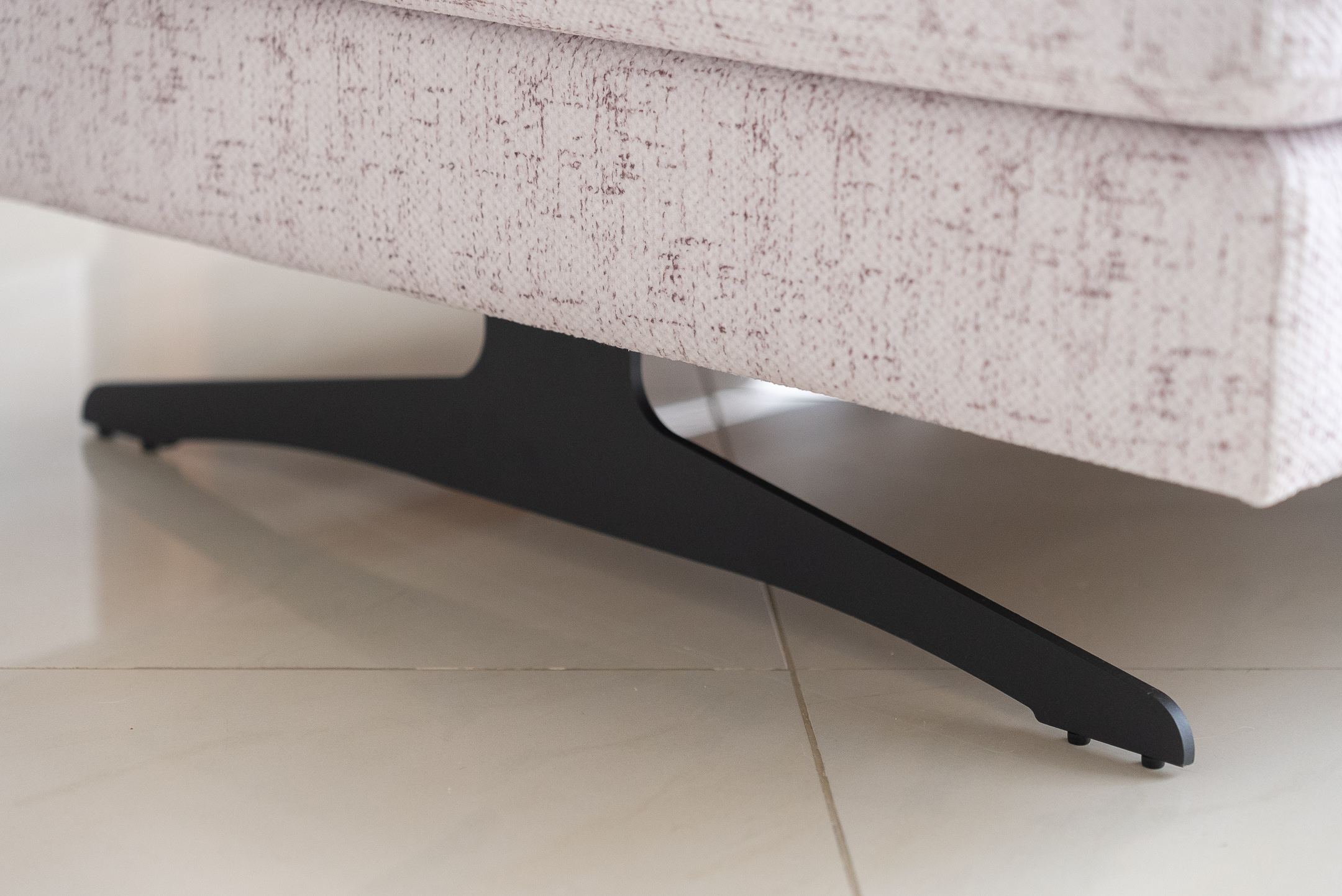 Το ανθεκτικό ύφασμα υψηλής ποιότητας εξασφαλίζει μεγάλη αντοχή στη χρήση και εύκολη συντήρηση, καθιστώντας το ιδανική επιλογή για καθημερινή χρήση. Τα διακριτικά μεταλλικά πόδια προσθέτουν μια σύγχρονη πινελιά και διευκολύνουν τον καθαρισμό του δαπέδου.