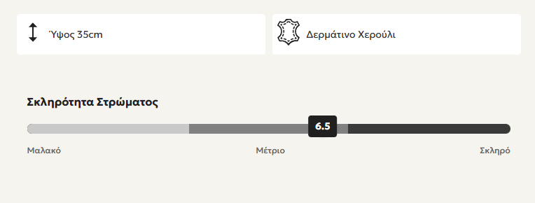 | Διαστάσεις στρώματος | 140×190 ,140×200 ,150×190 ,150×200 ,160×190 ,160×200 ,160×210 ,180×200 ,180×210 ,170×200 |