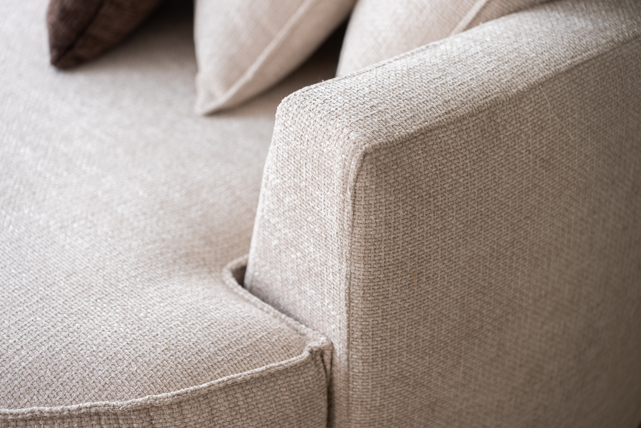 Η υφασμάτινη επένδυση σε γήινους τόνους αποπνέει ζεστασιά και ταιριάζει ιδανικά σε minimal και μοντέρνα εσωτερικά σύνολα. Ένα statement έπιπλο που συνδυάζει design και λειτουργικότητα, ιδανικό για στιγμές ξεκούρασης και φιλοξενίας.