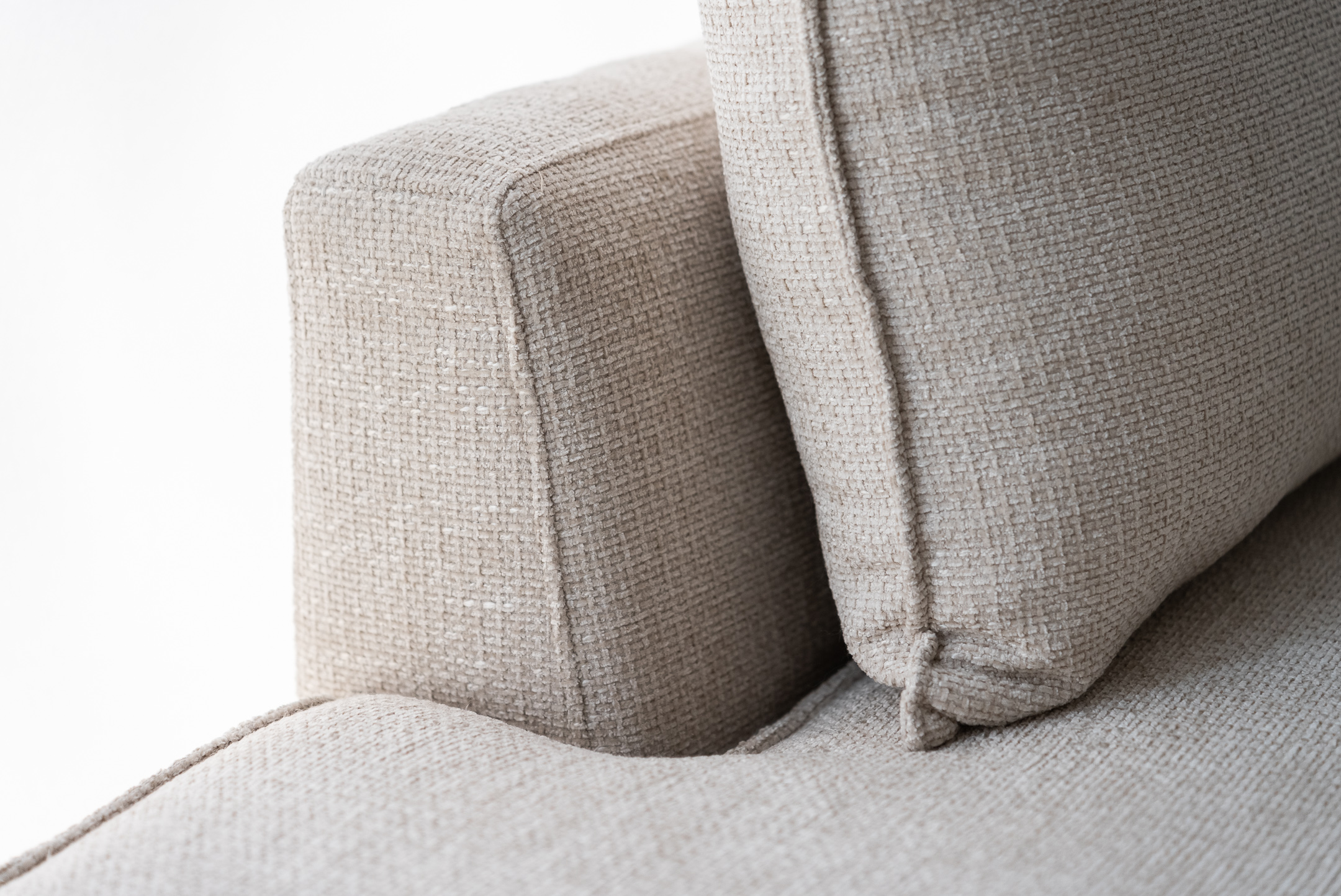 Γωνιακός καναπές σύγχρονης αισθητικής σε διαχρονική μπεζ απόχρωση, σχεδιασμένος για να αναβαθμίσει κάθε καθιστικό με κομψότητα και αρμονία.