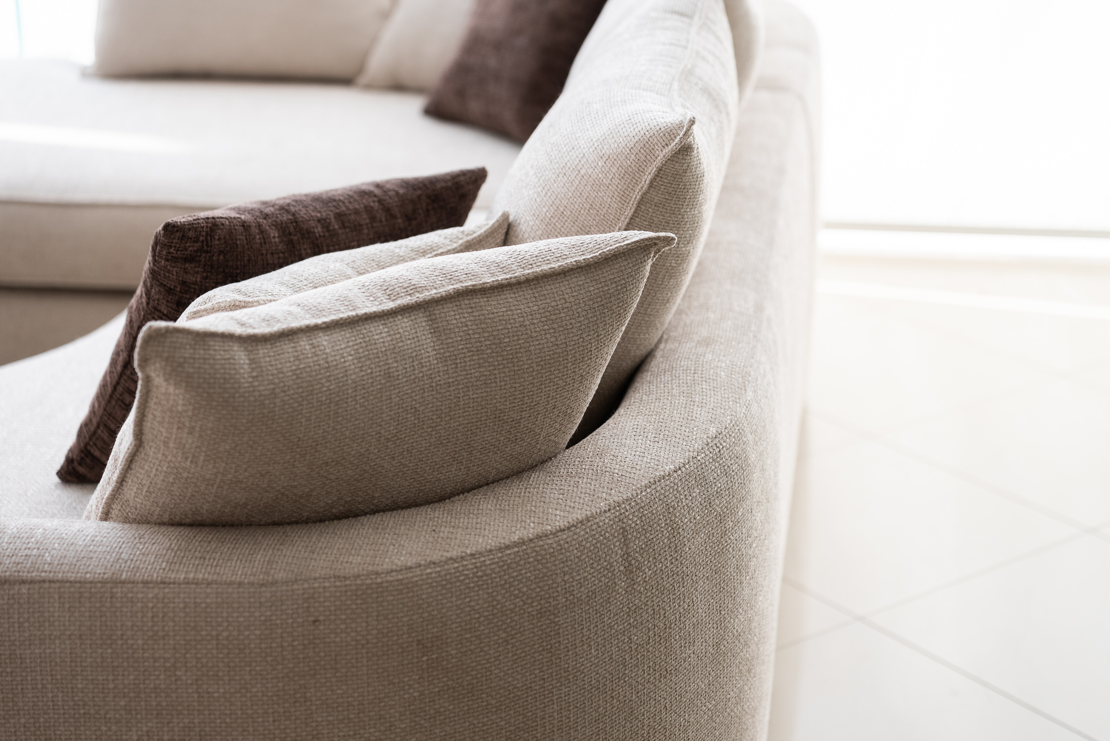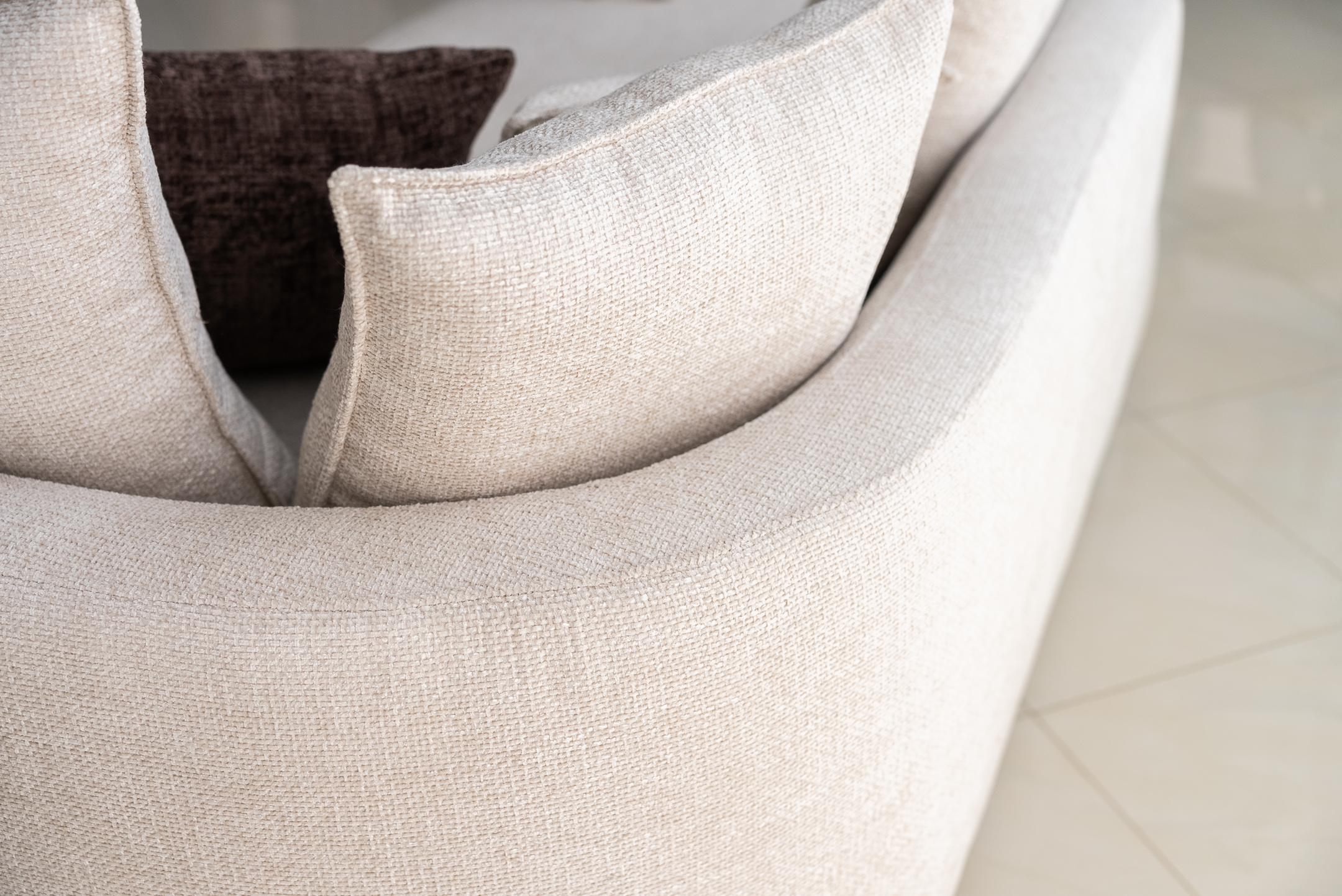 Γωνιακός καναπές σύγχρονης αισθητικής σε διαχρονική μπεζ απόχρωση, σχεδιασμένος για να αναβαθμίσει κάθε καθιστικό με κομψότητα και αρμονία. Οι απαλές καμπυλωτές γραμμές του και το ενσωματωμένο αναπαυτικό ανάκλιντρο δημιουργούν μια αίσθηση ροής στον χώρο, ενώ το βαθύ, αναπαυτικό κάθισμα με τα πλούσια μαξιλάρια προσφέρει απόλυτη άνεση στην καθημερινή χαλάρωση.